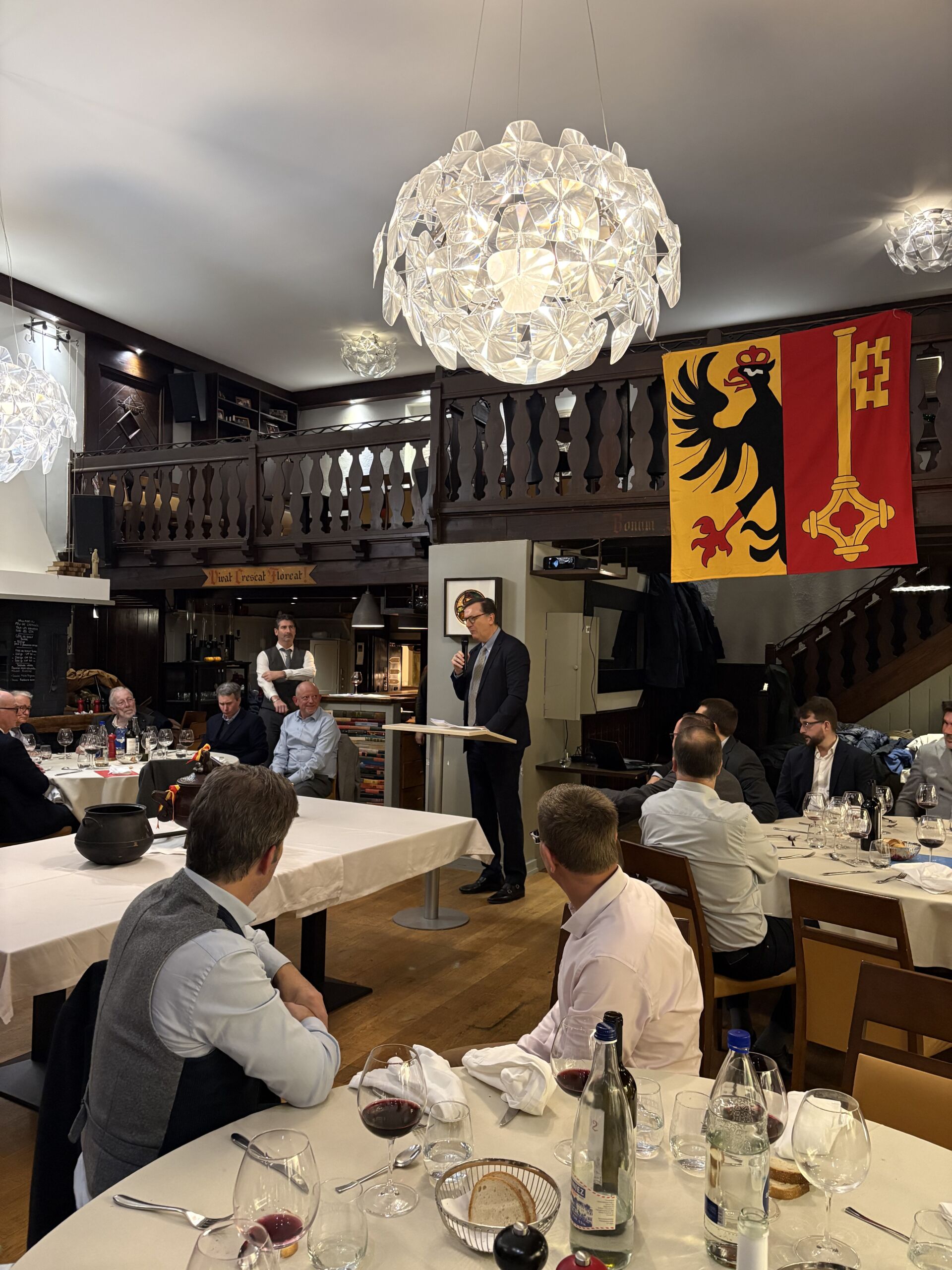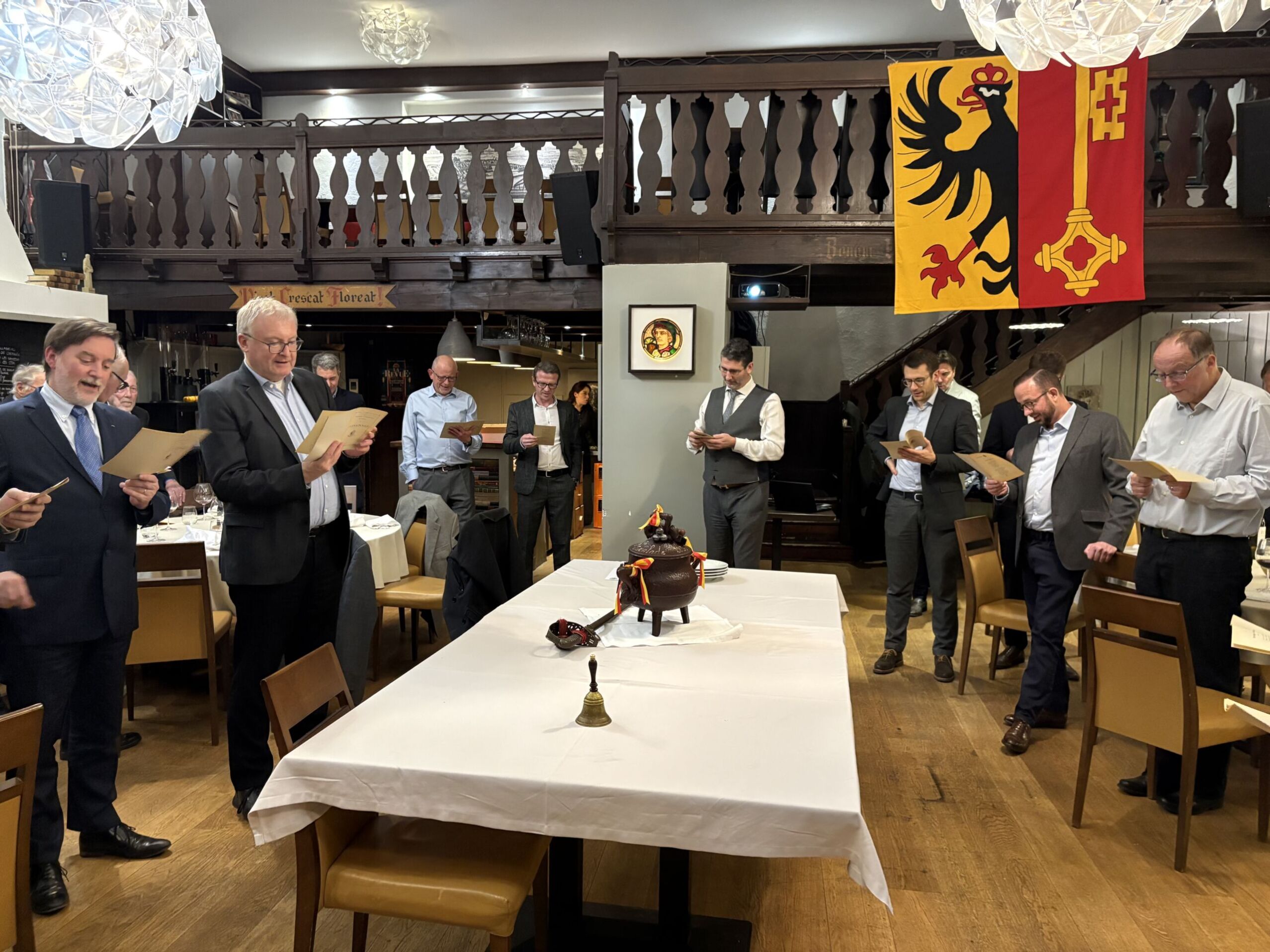 Le magnifique discours en hommage aux valeurs helvétiques et genevoises de notre ami et membre Nicolas Bille a été suivi du traditionnel chant à la patrie mené de voix de maître par le Président.